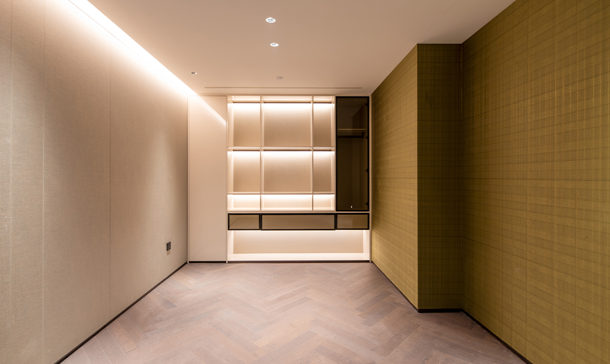 例如:嵌入式墙体衣柜、与墙体一体化的护墙板 + 储物柜组合、固定在地面的榻榻米地台、酒店客房的固定电视柜 / 行李柜。